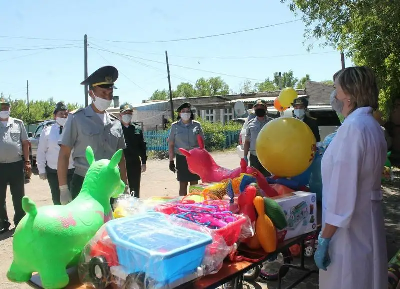 АЯГОЗ. КАЗИНФОРМ - Военнослужащие Вооруженных сил РК поздравляют воспитанников детских социальных учреждений с Международным днем защиты детей, передает корреспондент МИА «Казинформ» со ссылкой на пресс-службу РгК «Восток».
