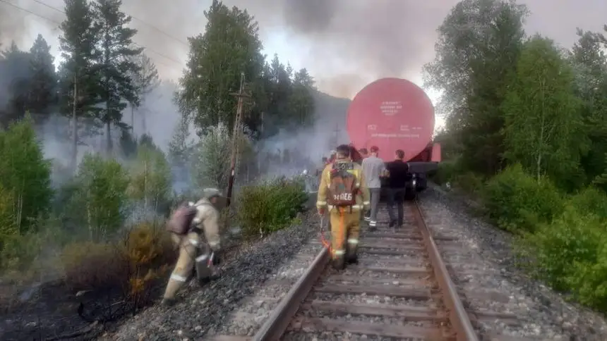 Возгорание травы с помощью пожарного поезда тушили в ВКО