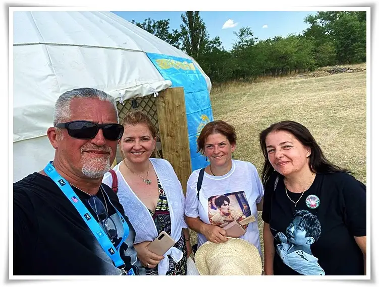 За «Юртой Аттилы» стояла белая юрта поменьше, на которой висел флаг Казахстана. Здесь гостей встречали представители венгерского фан-клуба Димаша – Dimash Dears Hungary (DDH).