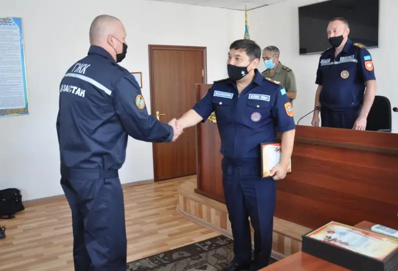 «Почетные грамоты получили: Базарбаев Аиб – руководитель оперативно спасательного отряда, вслед за ним - Страшной Игорь, Касымов Арман, Лапич Артем, Левшин Сергей, Абишев Руслан, Бимендинов Ардак, Жусупов Темирлан, Садуов Омар, Жумагулов Серик.
