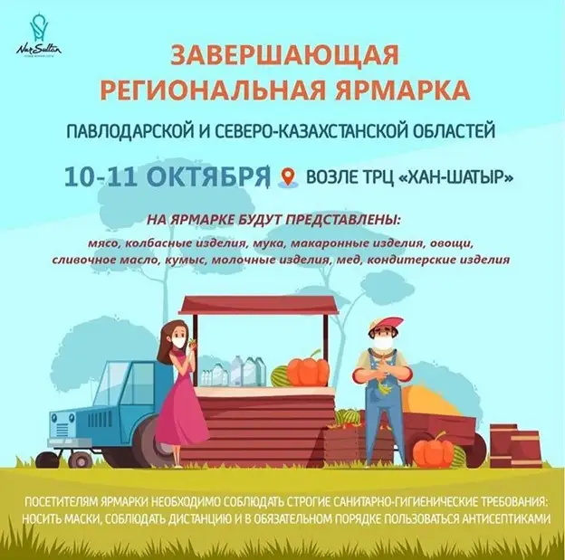 Ярмарка пройдет 10 и 11 октября на пересечении улицы Кунаева и проспекта Туран на площадке возле ТРЦ «Хан-Шатыр». Помимо качественной продукции павлодарские сельхозтоваропроизводители обещают жителям столицы приемлемые цены.
